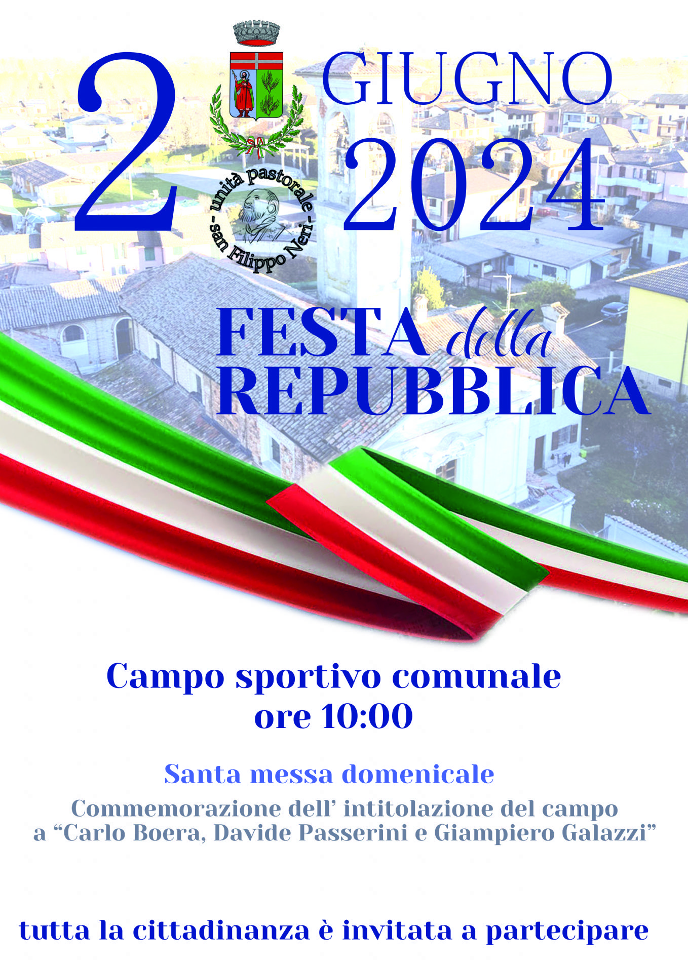 Tutta la cittadinanza è invitata a partecipare alla Santa Messa Domenicale presso il Campo Sportivo Comunale il 02/06/2024 alle ore 10.00 per la commemorazione dell'intitolazione del Campo a " Carlo Boera , Davide Passerini e Giampiero Galazzi"