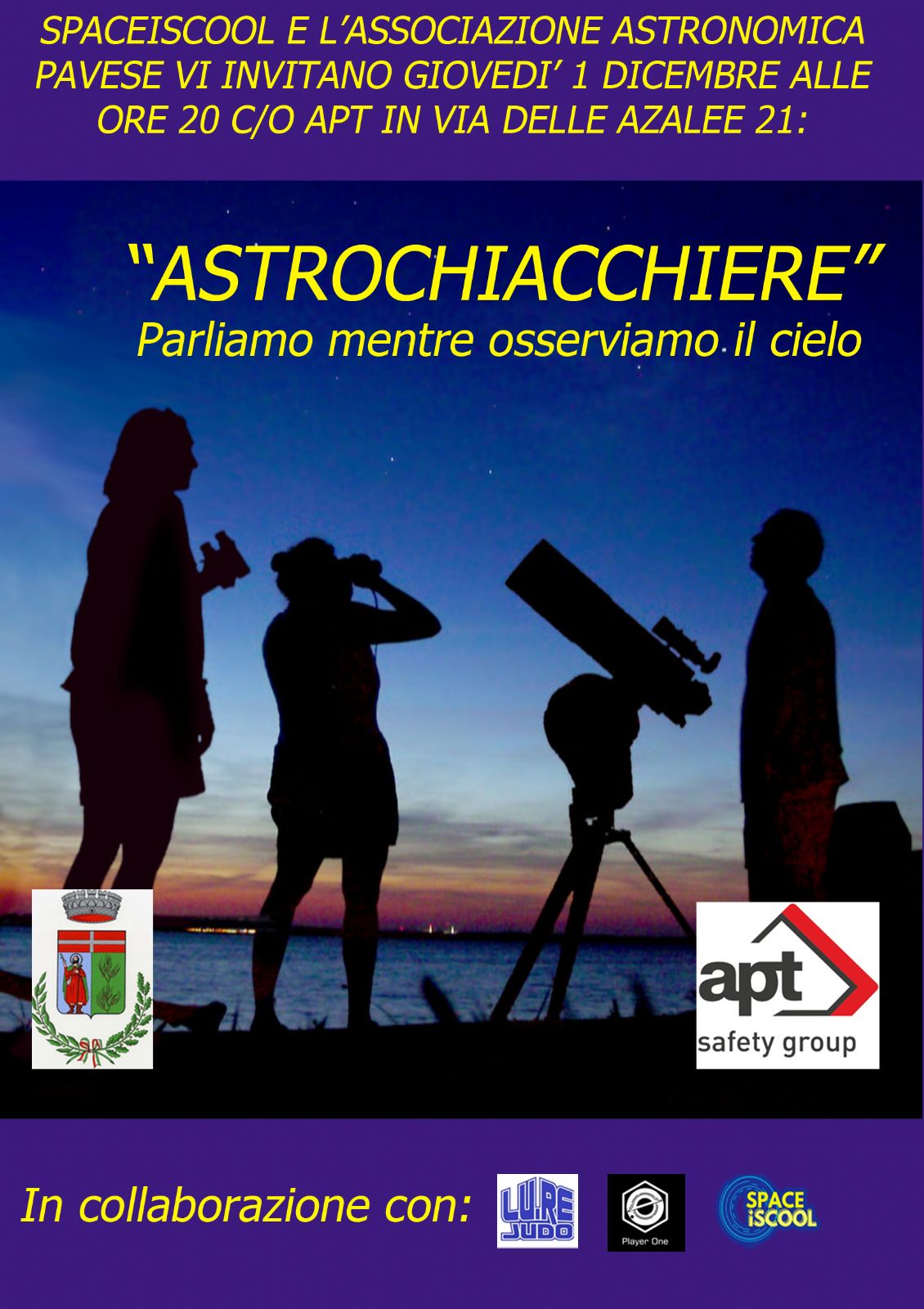 SpaceIsCool e l'Associazione Astronomica Pavese , vi invitano giovedì 1 DICEMBRE alle ore 20:00, serata divulgativa dedicata ai bambini di età scolare sull'astronomia e con la possibilità di osservare lo spazio con telescopio dal vivo . Prenotazione obbligatoria via sms o whatsapp 320/9033520