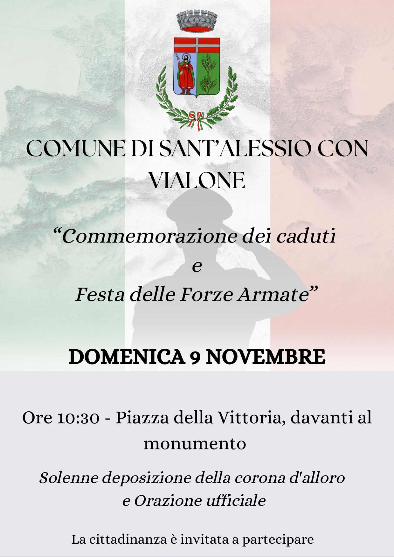 L’Amministrazione Comunale invita la cittadinanza a partecipare alla cerimonia di commemorazione dei Caduti e alla Festa delle Forze Armate, che si terrà domenica 9 novembre 2025.