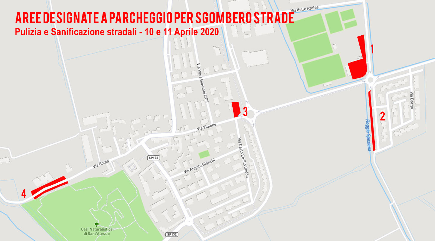 Si prega di spostare i mezzi dalla sede stradale in area privata: per chi non avesse spazio a sufficienza, di seguito vi segnaliamo le aree designate al parcheggio che verranno sottoposte successivamente a sanificazione manuale.