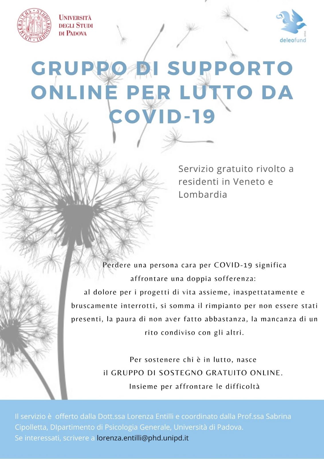 servizio di supporto online a chi ha perso un familiare per COVID-19, che aprirà a metà Ottobre e sarà disponibile gratuitamente per chi è residente in Lombardia e in Veneto.