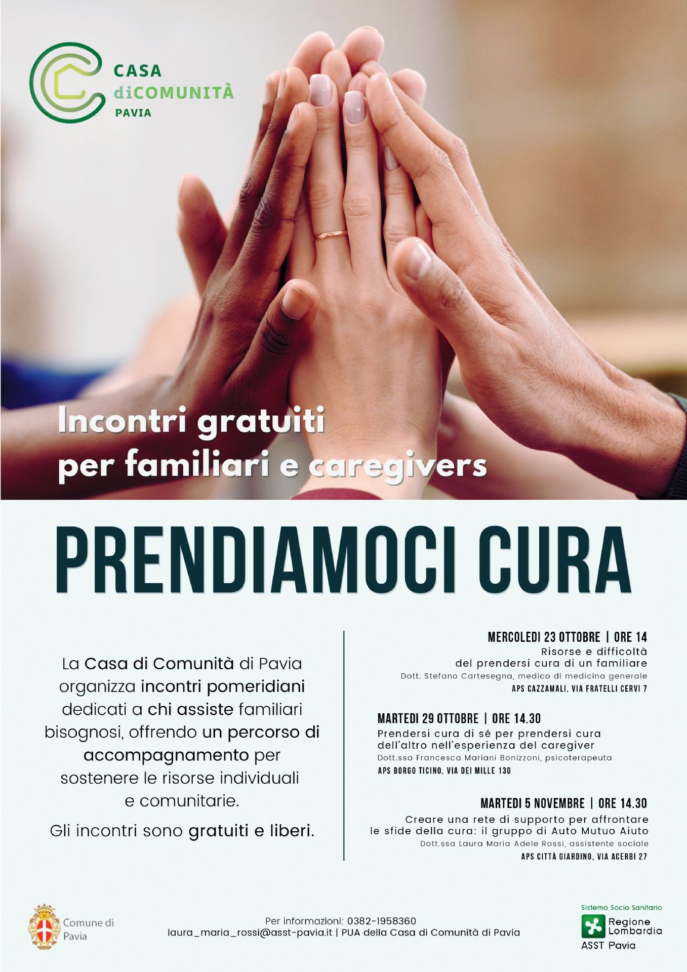 Su iniziativa di Asst Pavia e del Comune di Pavia, la Casa di Comunità, grazie all'incontro con esperti del settore, organizza incontri gratuiti e liberi dedicati a chi si prende cura di familiari.