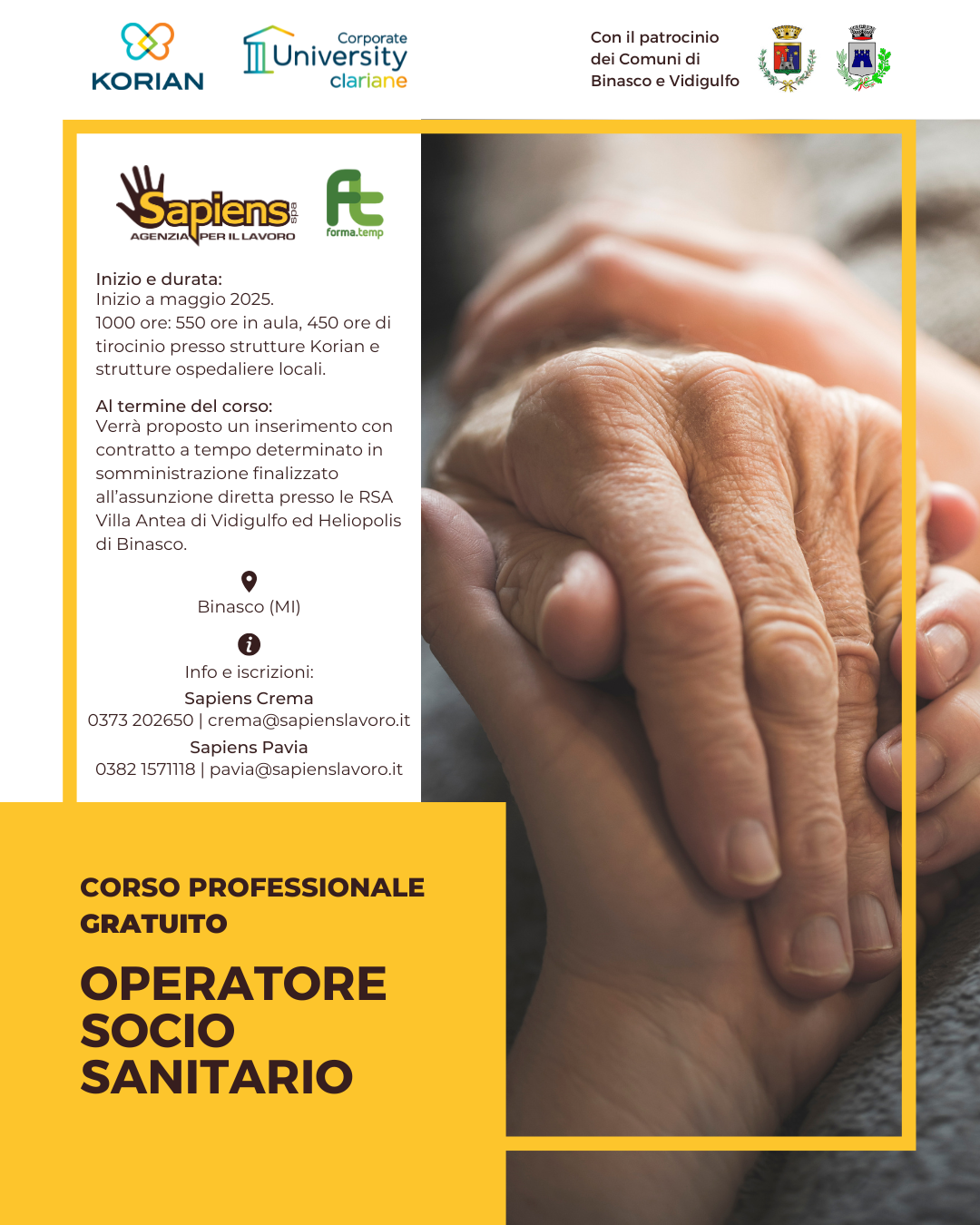 Si informa la cittadinanza che è in programma un corso professionale gratuito per la formazione di Operatore Socio Sanitario (OSS), con inizio nel mese di maggio 2025.
